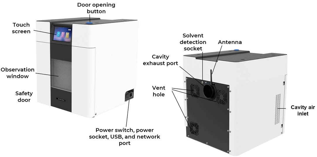 - Khoang vi sóng: Khoang thép không gỉ 316L thể tích lớn, được phủ bên trong và bên ngoài bằng Teflon chống ăn mòn nhiều lớp
