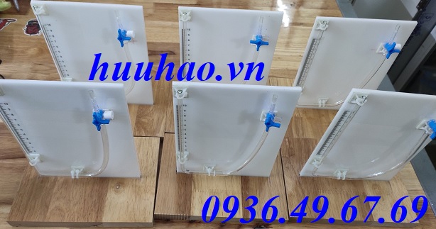 - Bô dụng cụ ống bình thông nhau, có mức vạch chia, khi cây xanh được cắm vào 1 đầu của ống nghiệm nhánh chữ U, khi cây xanh bay hơi nước, mực nước ở hai bên sẽ giảm, từ đó đo được mức độ giảm của mực nước cũng chính là mức bay hơi của nước do quá trình hấp thụ nước của cây xanh.