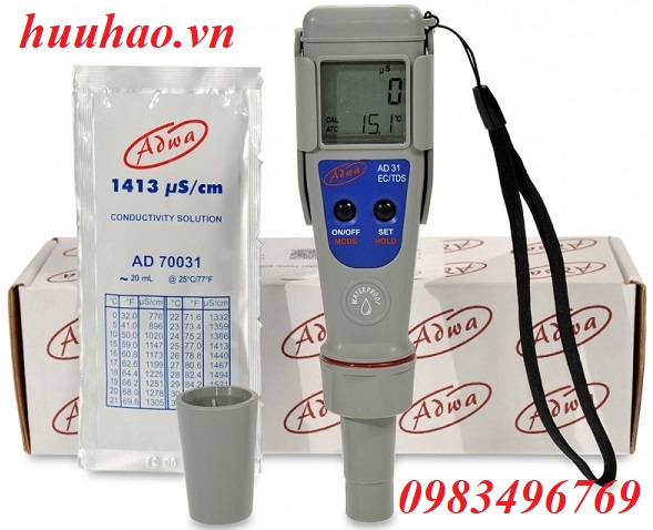 - (Cung cấp bút đo độ dẫn (EC), TDS và nhiệt độ AD31 bao gồm: máy chính model AD31, điện cực đo EC tích hợp nhiệt độ, dung dịch chuẩn 1413µS/cm gói 20ml và tài liệu hướng dẫn sử dụng)