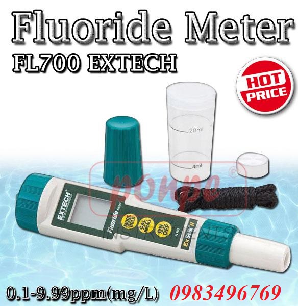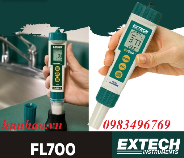 - Extech FL700 là dòng máy đo nồng độ Flo với độ chính xác cao và nhỏ gọn dạng bút. Được thiết kế đặc biệt để đo nhanh và chính xác các ion florua trong nước uống và các mẫu nước khác. Máy đo Fluoride ExStik FL700 kết hợp một điện cực cảm biến, với kiểu đo điện tử và màn hình hiển thị tốt. Thiết bị này trở nên lý tưởng cho việc kiểm tra tại chỗ hoặc phòng thí nghiệm.