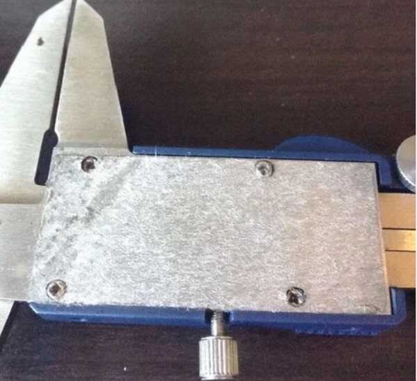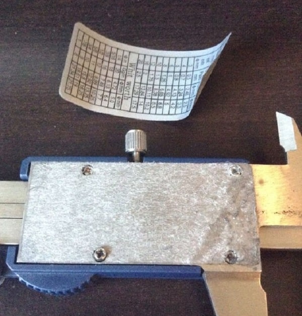 Trên mặt sau của thước cặp điện tử sẽ có một nhãn dãn hiển thị chữ Metr. Bạn hãy xé bỏ lớp nhãn dán đó ra sẽ thấy ốc vít bên trong.