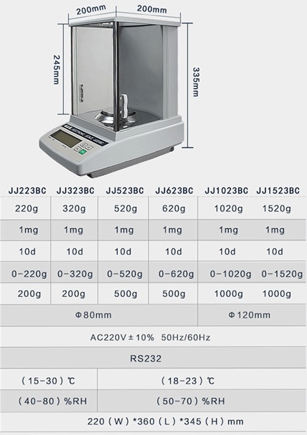 Tính năng sản phẩm Cân phân tích 3 số lẻ JJ223BC, JJ323BC, JJ623BC, JJ1023BC, JJ1523BC
