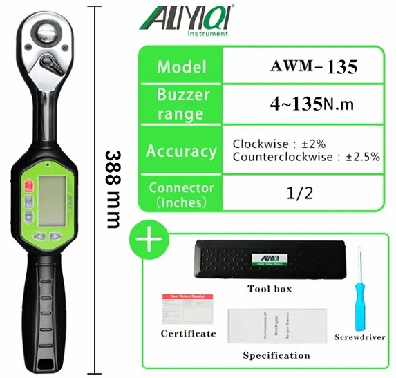Cờ lê lực kỹ thuật số Aliyiqi AWM-135 (135N.m/99.6ft,lb/1194in.lb/1377kgf.cm)
