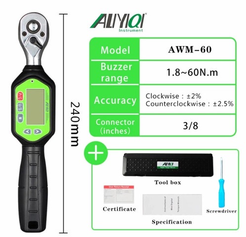 Cờ lê lực kỹ thuật số Aliyiqi AWM-60 (60N.m/44.25lbf.ft/531.04lbf.in/611.82kgf.cm)