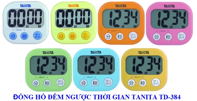 - Đồng hồ hẹn giờ đếm ngược TANITA TD-384 có khả năng hẹn giờ với độ chính xác tới từng giây. Thiết kế màn hình to, góc nhìn rộng để bạn có thể dễ dàng theo dõi thời gian cho dù bạn ở vị trí nào.