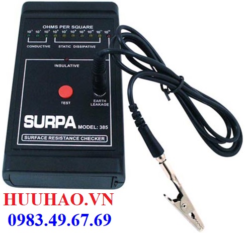 - Thiết bị đo điện trở bề mặt Surpa 385 được sử dụng rộng rãi, hoạt động bằng Pin, dụng cụ cầm tay di động dùng đo điện trở suất bề mặt của hầu như bất kỳ bề mặt phẳng nào, thiết bị phù hợp với tiêu chuẩn ASTM D-257 bằng cách sử dụng đầu dò cảm biến thanh song.