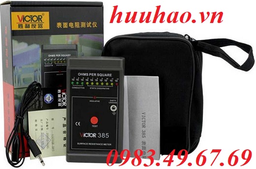 - Thiết bị đo điện trở bề mặt victor 385 được sử dụng rộng rãi, hoạt động bằng Pin, dụng cụ cầm tay di động dùng đo điện trở suất bề mặt của hầu như bất kỳ bề mặt phẳng nào, thiết bị phù hợp với tiêu chuẩn ASTM D-257 bằng cách sử dụng đầu dò cảm biến thanh song.