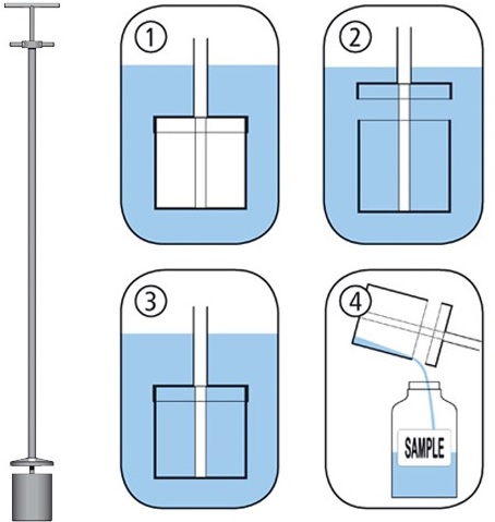 - Cốc lấy mẫu chất lỏng này thích hợp để lấy mẫu điểm đích tại vị trí bên trong bình mà chất lỏng mẫu đã được xác định chính xác. Chỉ có thể mở cốc có lò xo tại điểm lấy mẫu. Bộ lấy mẫu này có khả năng chịu nhiệt độ từ -460 đến 1292 °F (-273 đến 700 °C), có thể được khử trùng bằng hơi nước và cốc 100 ml có thể được tháo ra khỏi thân, cho phép dễ dàng làm sạch.