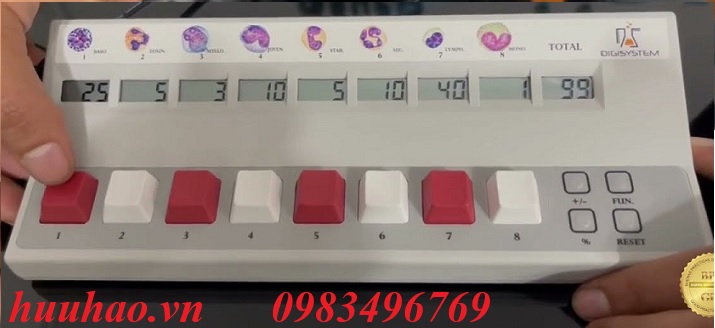 - Bộ đếm tế bào máu khác biệt với núm đặt lại có thể dễ dàng xóa tất cả các số liệu. Máy đếm bách phân DBC Digisytem Chứng nhận chất lượng: ISO 9001, ISO 13485