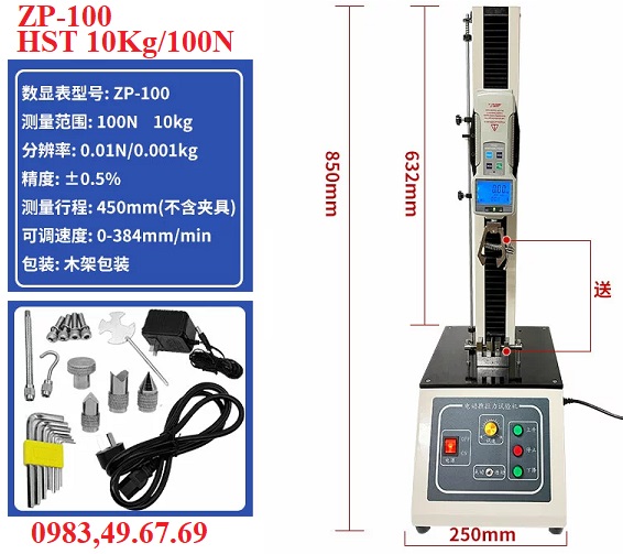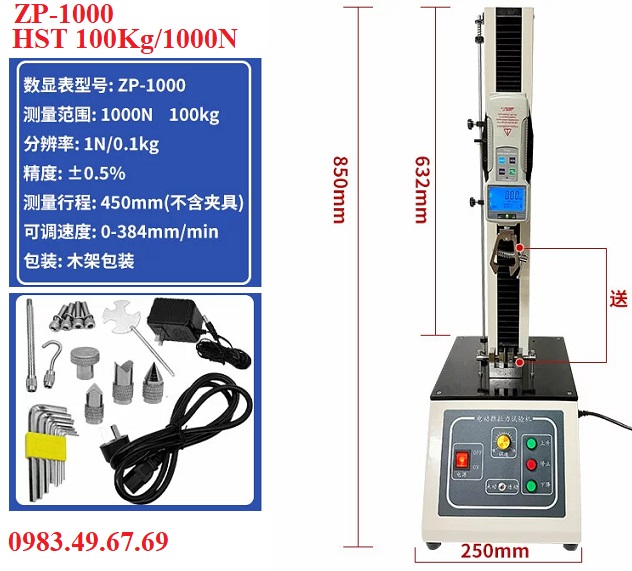 Thân máy đo lực tự động HST + màn hình kỹ thuật số 1000N/100kg và bộ phụ kiện:
