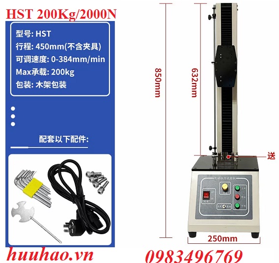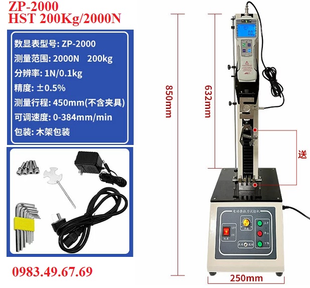 Thân máy đo lực tự động HST + màn hình kỹ thuật số 2000N/200kg và bộ phụ kiện: