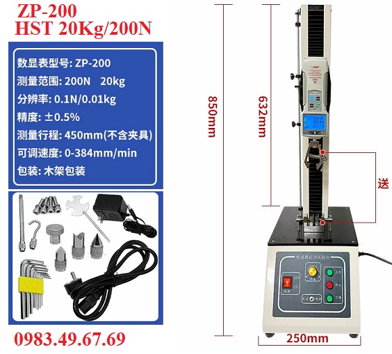 Thân máy đo lực tự động HST + màn hình kỹ thuật số 200N/20kg và bộ phụ kiện: