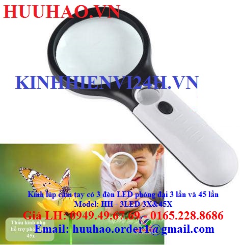 Giới thiệu Kính lúp cầm tay 3X và 45X loại 3 đèn LED HH - 3LED 3X&45X trang bị 2 thấu kính thủy tinh quang học giúp bạn đọc tài liệu và các quan sát được các vật nhỏ xíu một cách dễ dàng hơn.