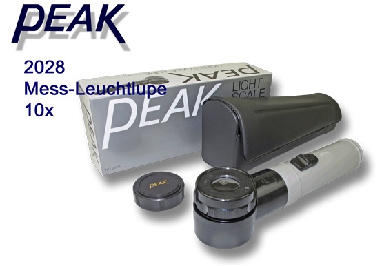 Kính lúp Peak cầm tay 2028-10X (độ phóng đại 10X, có cán, đèn, thang đo)