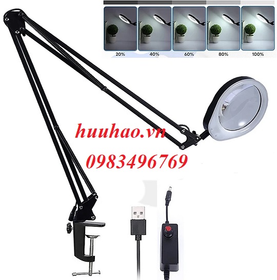 Kính lúp công nghiệp gắn bàn có đèn TERINO DE-27B (phóng đại 10X và 20X, Led, màu đen)
