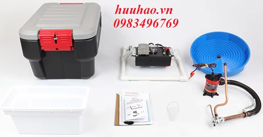 - Máy rửa vàng xoắn ốc nhẹ và hoàn toàn khép kín, nặng khoảng 10 pound (5Kg). Máy có kích thước DxRxC; 50.8 x 38.1 x 30.48 cm và được cung cấp năng lượng bởi pin 120 volt (không bao gồm trong danh sách đóng gói)
