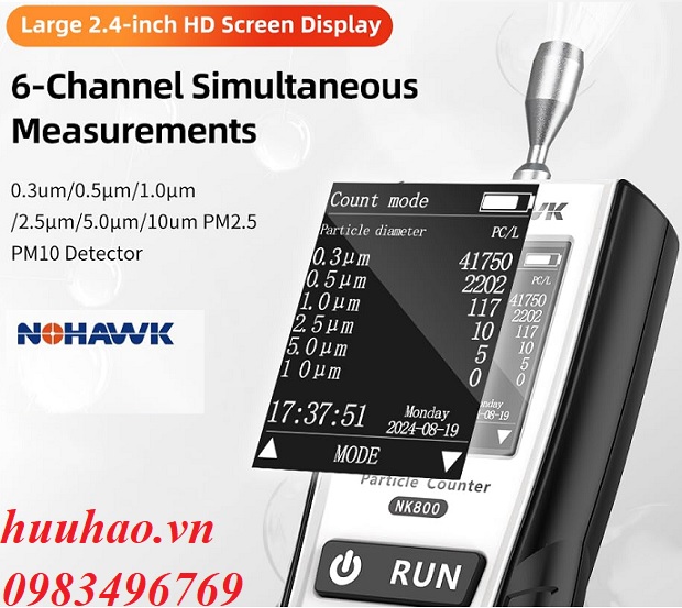 Máy đếm hạt bụi tiểu phân 6 kênh 0,3, 0,5, 1,0, 2,5, 5,0 và 10 µm NK800 Nohawk