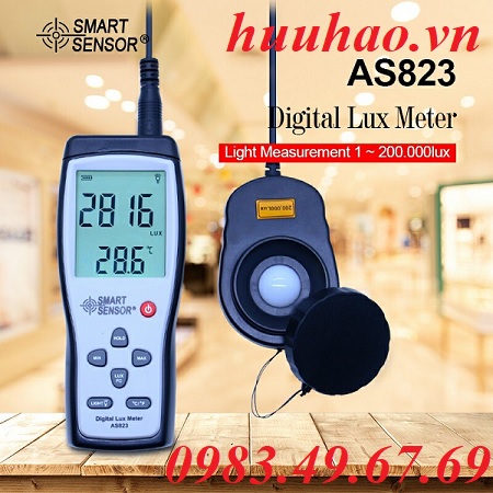 - Máy đo cường độ ánh sáng AS823 (luxmeter) là một công cụ đặc biệt để đo độ rọi sáng. Thiết bị đo ánh sáng AS823 được sử dụng rộng rãi trong các nguồn điện quang học, giảng dạy nghiên cứu, xây dựng luyện kim, thanh tra ngành công nghiệp cũng như nông nghiệp, nghiên cứu và điều khiển chiếu sáng.