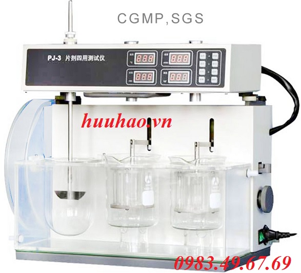 - Máy đo đa chỉ tiêu thuốc PJ-3 được ví như một phòng thí nghiệm thuốc thu nhỏ, máy được sản xuất theo công nghệ Châu Âu rất gọn nhẹ dễ sử dụng máy có 2 vị trí đo độ rã, 1 vị trí đo độ hòa tan, 1 vị trí đo độ mài mòn, 1 vị trí đo độ cứng rất tiện lợi, màn hình hiển thị số, chức năng cài đặt nhiệt độ, tốc độ khuấy và thời gian. Chức năng tự động ngắt khi quá nhiệt, mất nước,…
