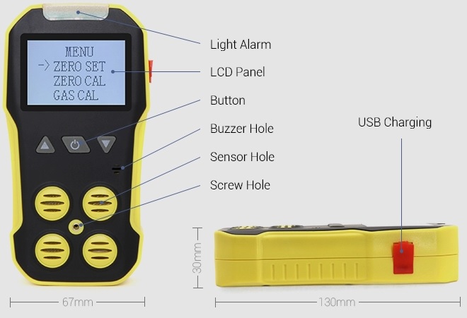 - Bộ dò khí gas di động với màn hình LCD lớn. Nó có thể giám sát khí CO, H2S, O2 và khí gas dễ cháy LEL cùng lúc. Thiết bị này có hai báo động tức thì với các chỉ báo âm thanh/hình ảnh và rung, pin sạc và sử dụng đơn giản.