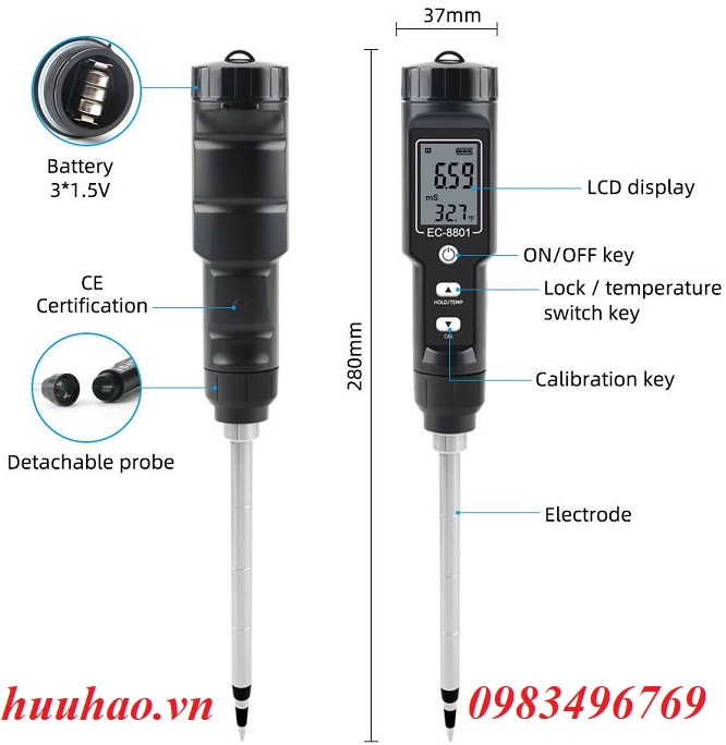 - Sản phẩm này có thể xác định nhanh chóng và chính xác giá trị EC của đất, giúp bạn đạt được năng suất tốt khi trồng trọt. Đèn nền độc đáo, điện cực dài, thuận tiện cho bạn đọc kết quả trong môi trường thiếu sáng. Được sử dụng rộng rãi trong các trang trại, đồn điền nông nghiệp, trường học nông nghiệp, phòng thí nghiệm...