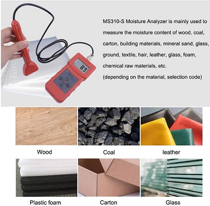 - Máy kiểm tra độ ẩm cảm ứng MS310-S được sử dụng để đo độ ẩm của gỗ, Gỗ, giấy, Tre, thùng carton, bê tông, dệt may và các vật liệu khác. Thiết bị đo độ ẩm MS310-S được áp dụng của đồ gỗ, sản xuất giấy, dăm gỗ, đồ nội thất, xây dựng, gỗ thương nhân và Ngành công nghiệp khác có liên quan.