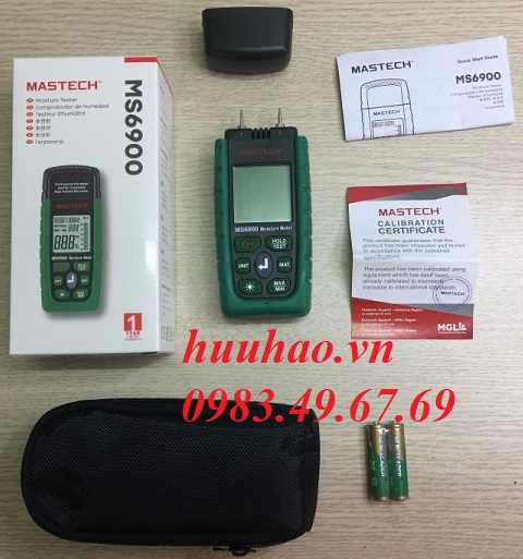 - Máy đo độ ẩm gỗ Mastech MS6900 có độ chính xác cao, đầu dò được làm bằng hợp kim chuyên dụng có độ bền bỉ khi tiếp xúc với các loại vật liệu đo, là loại máy chuyên dụng để đo độ ẩm bề mặt, độ ẩm của các loại gỗ, ván ép, thạch cao...
