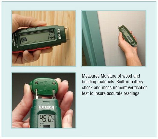 - Extech MO210 thường được gọi là các máy đo độ ẩm tường bê tông hay các máy đo độ ẩm gỗ có thiết kế dạng cầm tay gọn nhẹ, tiện dụng và rất dễ sử dụng. Máy có thể đo chính xác độ ẩm của các loại vật liệu như: gỗ, bìa cứng, bảng tường, đá, thạch cao, bê tông, vữa...