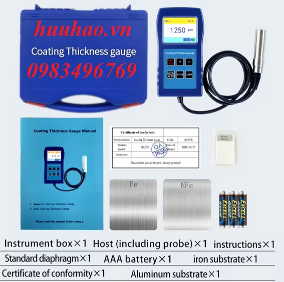 Máy đo độ dày lớp phủ đa năng Dongru DR280 từ trường xoáy độ chính xác cao 0-1250um (1%-3%)H+1,5m: