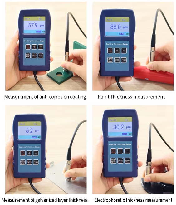 - A. Phương pháp đo độ dày từ tính có thể được sử dụng để đo độ dày của lớp phủ không từ tính trên bề mặt kim loại từ tính (như thép và sắt) mà không bị hư hại (như mạ kẽm, crom, GU, men, cao su, bột, sơn, điện di, men, phun nhựa, sơn, chống ăn mòn và chống cháy…).