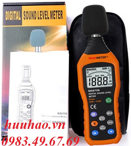 - Máy đo âm thanh PM6708 Peak meter là dụng cụ dùng để đo mức âm thanh xung quanh như mức âm thanh xung quanh nhà máy, xưởng, trường học, khu dân cư, văn phòng, đường xá. Máy đo mức âm thanh tuân theo tiêu chuẩn IEC651 loại 2 và ANSI S1.4 loại 2 với phạm vi đo từ 30 đến 130 dB và chức năng dịch chuyển tự động lựa chọn mạng trọng số A và C. Với tính năng đèn nền, nó thích hợp để thu thập dữ liệu âm thanh vào ban đêm. Để tiết kiệm điện năng, chức năng tự động tắt nguồn của đèn nền được cung cấp Quy trình đúc phun vật liệu composite được áp dụng cho vỏ với thiết kế cấu trúc chống rơi. Nó không chỉ cực kỳ bền mà còn thanh lịch.