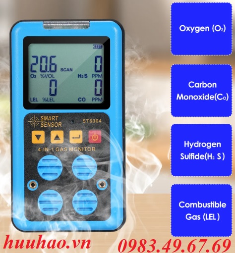 THIẾT BỊ ĐO 4 KHÍ O2, CO, H2S, LEL SMARTSENSOR ST8904