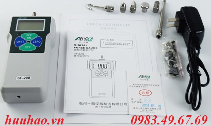 - Máy đo lực kéo nén Aliyiqi SF-2, SF-3, SF-5, SF-10, SF-20, SF-50, SF-100, SF-200, SF-500 là một máy đo lực đơn giản, dễ sử dụng và hiệu suất cao. Màn hình LCD lớn thiển thị giá trị đo, đơn vị và chế độ đo. Các tính năng bổ sung bao gồm hiển thị giá trị đảo ngược và các điểm đặt cao/thấp với chỉ báo OK.