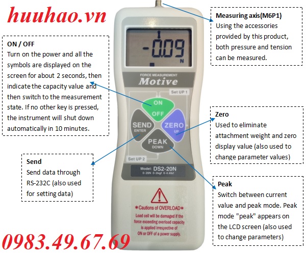 Thông số kỹ thuật máy đo lực kéo đẩy MOTIVE DS2-200N