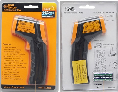 - Súng đo nhiệt độ hồng ngoại Smart Sensor AR320 không tiếp xúc là sản phẩm súng đo nhiệt độ thế hệ mới, có thể đo chính xác nhiệt độ bề mặt của vật thể bằng cách đo không tiếp xúc. Thích hợp cho việc đo nhiệt độ ở khoảng cách cao, hay những môi trường nguy hiểm con người không thể tới được.