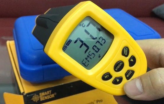 - Với màn hình LCD lớn kết quả đo hiển thị to rõ nét cùng đèn nền giúp bạn hoàn toàn có thể quan sát được kết quả đo trong điều kiệnánh sáng ban ngày hay trong điều kiện đo thiếuánh sáng. Là súng đo đo nhiệt độ từ xa nên ngoài sử dụng hồng ngoại để đo, Súng đo nhiệt độ này còn sử dụng đèn laser để định hướng khu vực hay vị trí cần đo giúp bạn có thể xác định được dễ dàng cũng như chính xác vật cần đo. Để kết quả đo có độ chính xác cao nhất bạn có thể sử dụng tỷ lệ 20:1 để đo (tỷ lệ này được giải thích như sau nếu bạn đo nguồn nhiệt có đường kính là 1cm thì khoảng cách tối ưu để đo là 20cm)
