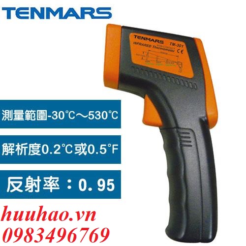 - Tenmars TM-301 là máy đo nhiệt độ hồng ngoại dạng súng. Máy ứng dụng tia hồng ngoại và bộ cảm biến nhiệt độ để đo chính xác nguồn nhiệt mà không cần tiếp xúc. Máy đo nhiệt độ hồng ngoại đo vô cùng chính xác với kết quả phản hồi nhanh, khoảng đo rộng: từ -30 tới 530 độ C