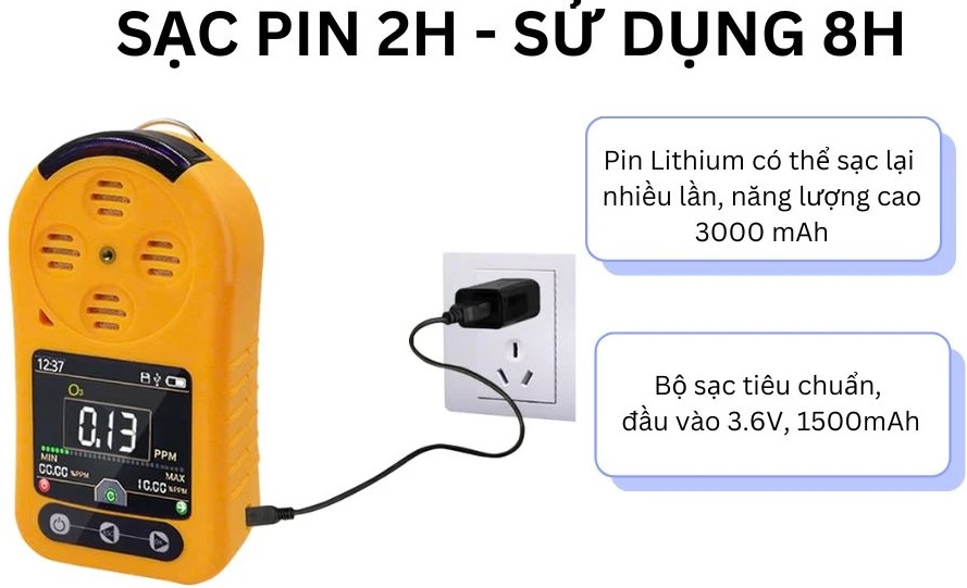 - Điểm báo động mặc định: 2ppm