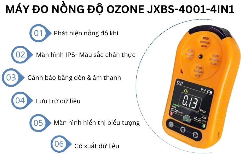 THÔNG SỐ KỸ THUẬT MÁY ĐO NỒNG ĐỘ KHÍ OZONE O3 JXBS-4001-O3
