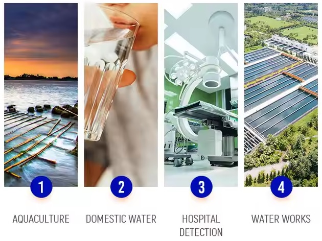 - Thiết bị được sử dụng để theo dõi và kiểm soát liên tục hàm lượng ozone trong các nhà máy xử lý nước, nhà máy đóng hộp, mạng lưới phân phối nước uống, hồ bơi, nước làm mát và tuần hoàn, các dự án xử lý nước…