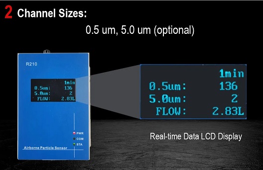 - 4 kênh: 0.3μm, 0.5μm, 1.0μm, 5.0μm