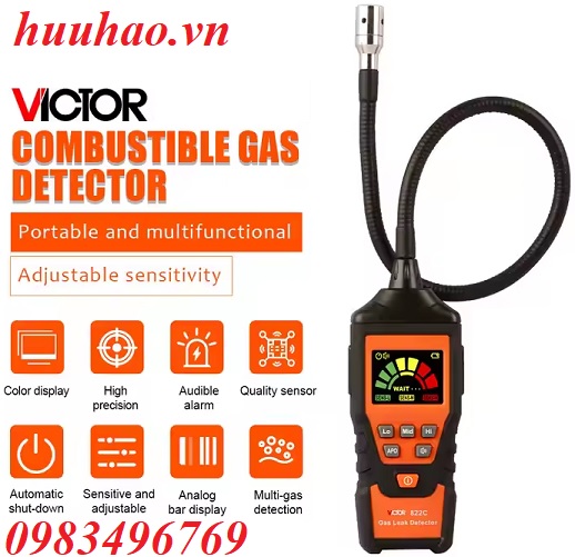 Máy phát hiện rò khí gas Victor 822C (~50ppm) Cảm biến thông minh, báo động bằng âm thanh hình ảnh