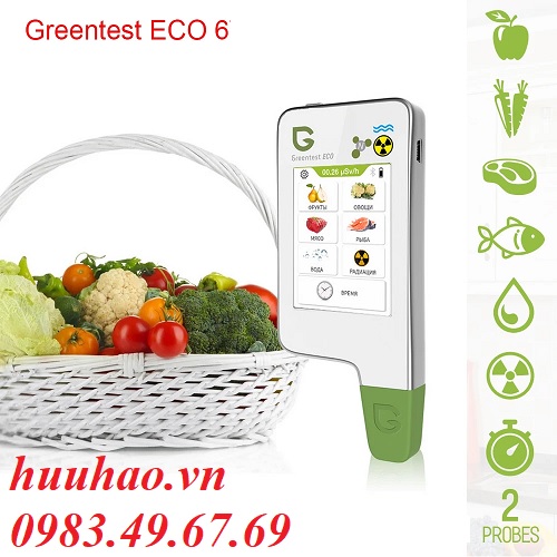 - Máy đo an toàn thực phẩm Greentest ECO 6 (Đo Nitrat, TDS, Bức Xạ) là một thiết bị phát hiện tích hợp nitrat, chất lượng nước và bức xạ môi trường. Không chỉ đo nhanh chóng và chính xác mức độ an toàn của hơn 60 loại trái cây, rau củ, thịt, hải sản mà còn đo chất lượng nước uống và bức xạ nền trong môi trường xung quanh. Giúp người dùng có thể bảo vệ gia đình khỏi các ion bức xạ hông an toàn.