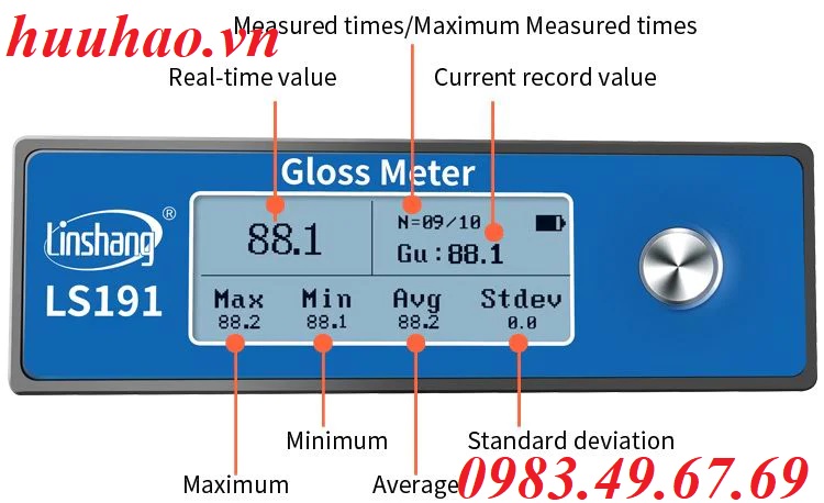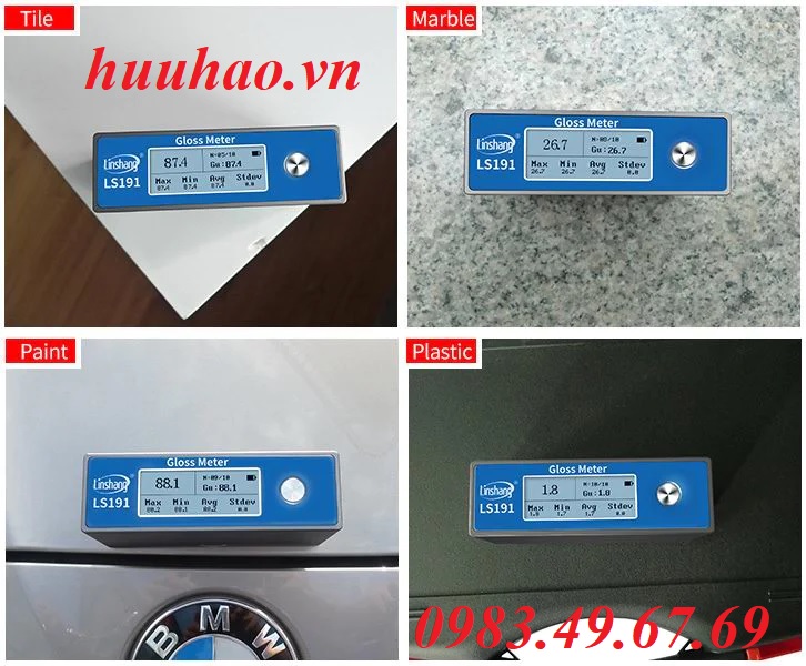 - Ứng dụng: Máy đo độ bóng cầm tay LS191 có dải đo 0-200GU. Máy kiểm tra độ bóng này đặc biệt thích hợp để đo độ bóng bề mặt của các vật liệu như sơn, mực, chất phủ, nhựa, da, gốm sứ, tre, đá cẩm thạch và các sản phẩm gỗ…