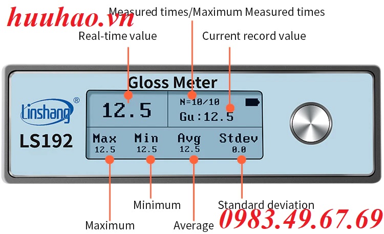 - Máy đo độ bóng cầm tay Linshang LS192 có thể được sử dụng để kiểm tra độ bóng bề mặt của sơn, chất phủ, mực, nhựa, giấy, gạch, gốm sứ, đá, kim loại và các sản phẩm mạ điện. Nó là một máy đo độ bóng góc 60 độ với dải đo lên đến 1000GU. Dữ liệu thử nghiệm có thể được so sánh với máy thử độ bóng BYK của Đức.