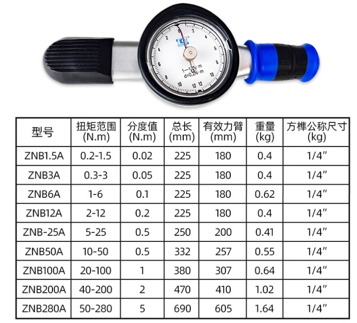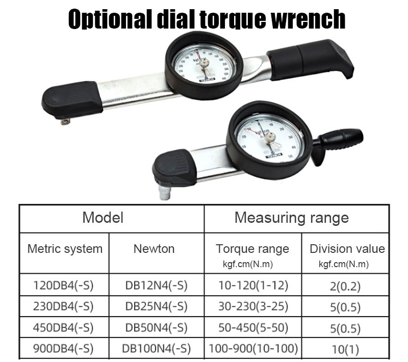 - Phạm vi đo: 0~100N.m (1000kgf.cm), phù hợp với vít < M12