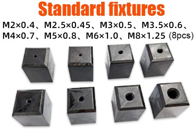 - Vít tiêu chuẩn: M2x0.4; M2.5x0.45; M3x0.5; M3.5x0.6; M4x0.7; M5x0.8; M6x1.0; Ốc vít M8x1.25 (8 chiếc)