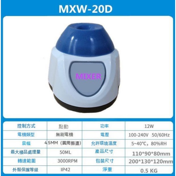 Thông số kỹ thuật máy lắc vortex mini 3000 vòng/phút MXW-20D