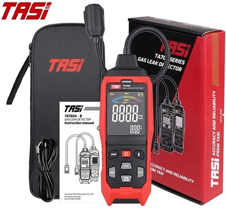 - Máy dò khí cầm tay Tasi TA702B là máy phát hiện khí metan và máy phát hiện rò rỉ xăng tại nhà phù hợp để phát hiện rò rỉ khí dễ cháy hàng ngày như khí đốt, khí tự nhiên và khí hóa lỏng.