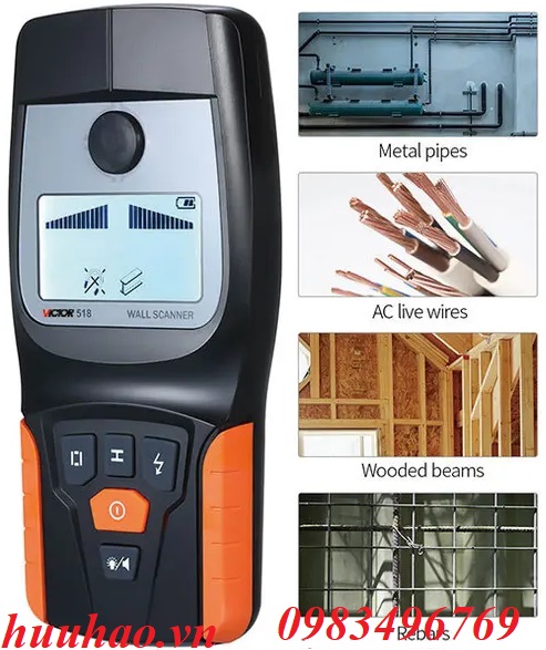 - Công cụ victor 518 này là máy quét tường cầm tay để phát hiện nhanh kim loại từ tính trong tường, mái nhà và sàn nhà, chẳng hạn như thép gia cố, ống sắt và kim loại không từ tính như ống nhôm, ống đồng và vật liệu không kim loại như dầm, ống nước PVC cũng như các vật thể mang điện như dây điện.